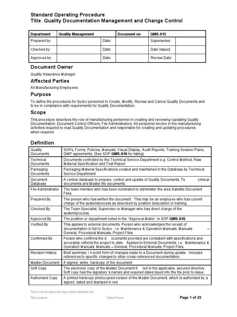 Qms Sop Template